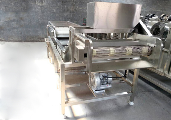 該流水線主要由清洗段、提升輸送段、震動瀝水段以及風干除水段組成,主要用于袋裝食品的高低溫殺菌后,產(chǎn)品表面油污、油漬的連續(xù)清洗及風干。